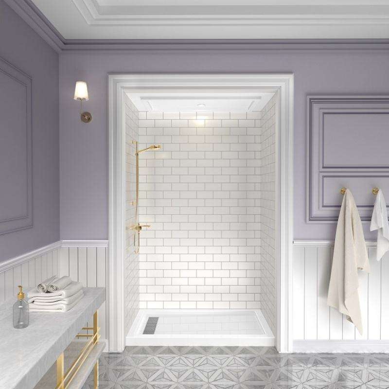 Bac de douche d'angle moderne à drainage rapide, durable, rectangulaire, en acrylique SMC avec surface lisse en marbre pour salles de bain