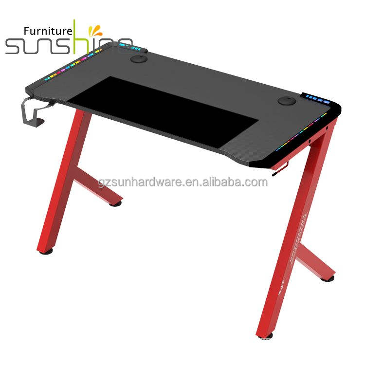Bureau de jeu de course moderne avec lumière RVB Meilleure configuration avec lumières LED chaudes Accessoires de table pour ordinateur portable personnalisés Prix d'usine Matériau métallique