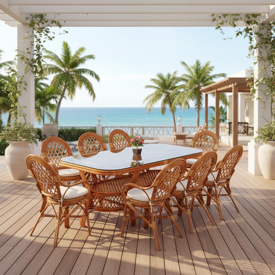 Ensemble de mobilier de salle à manger en rotin moderne pour restaurants, hôtels, centres commerciaux - Utilisation en extérieur - Modèle CV.Craftindo Java