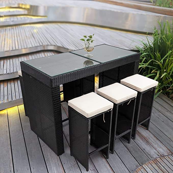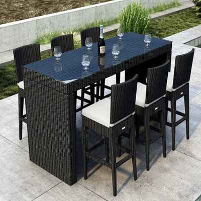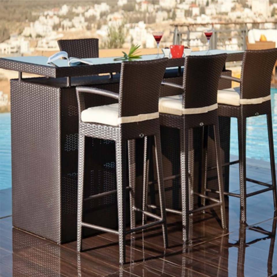 Ensemble de bar de jardin en rotin moderne - Mobilier d'extérieur avec structure en aluminium et tissu imperméable pour entrepôt et hôtel