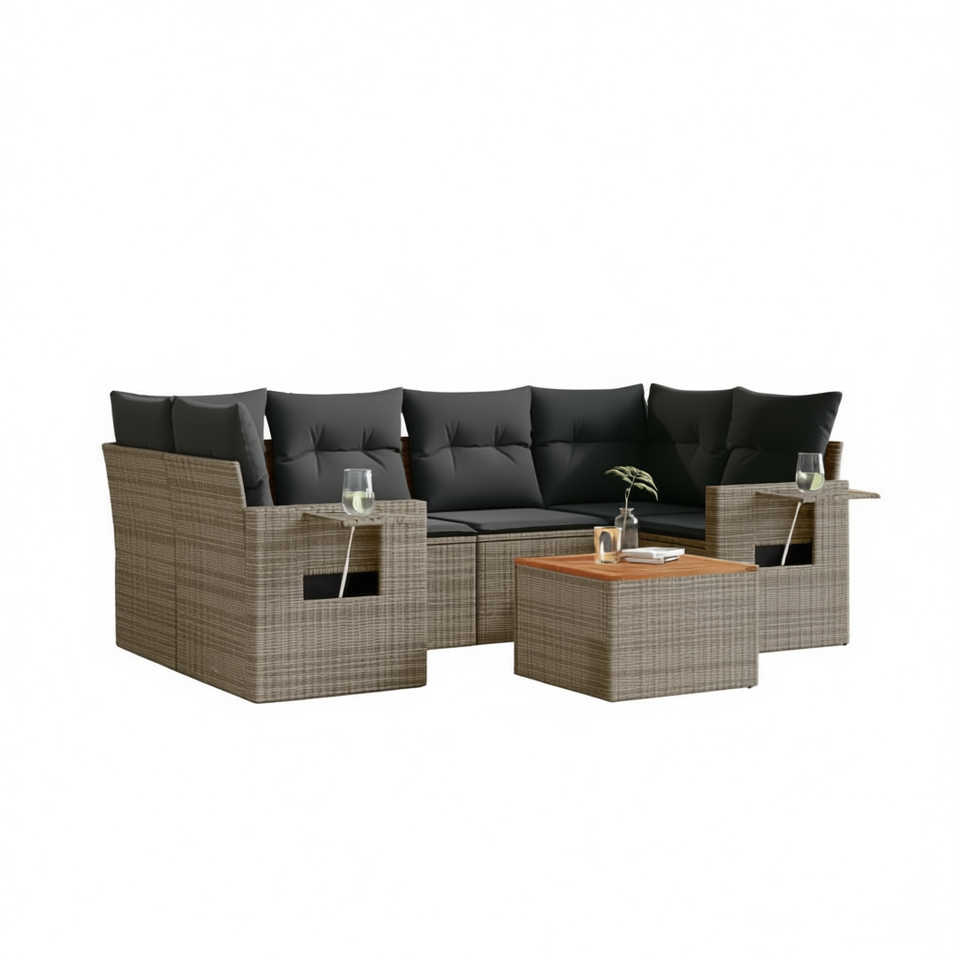 Ensemble de canapés de jardin en rotin moderne 6 places, mobilier d'extérieur résistant aux intempéries, design contemporain, coussins gris foncé