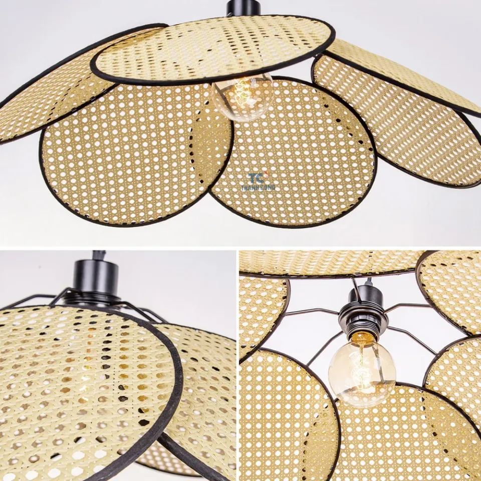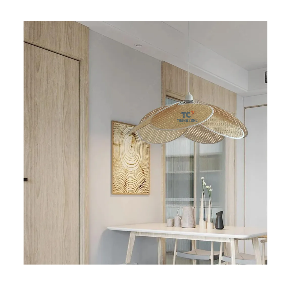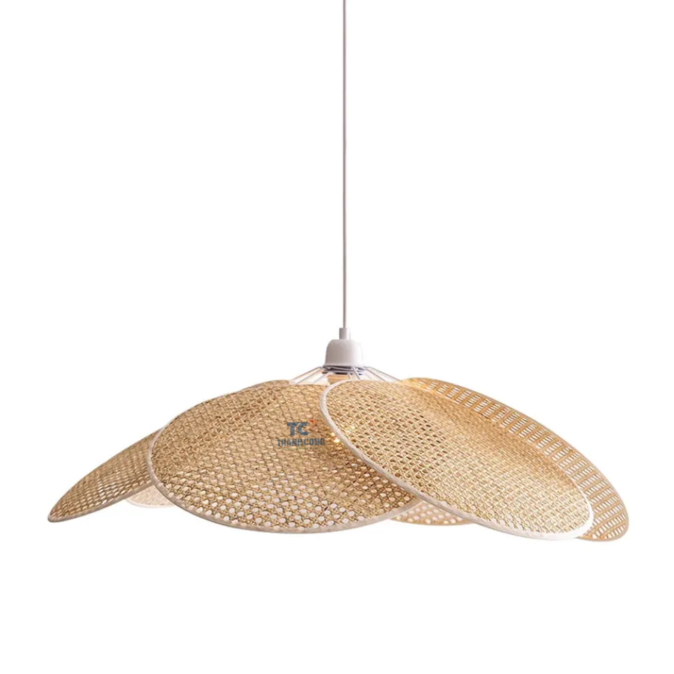 Abat-jour en rotin moderne pétale plafonnier forme de fleur éclairage décoratif lampes suspendues en gros Vietnam