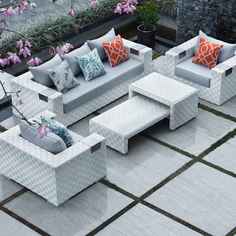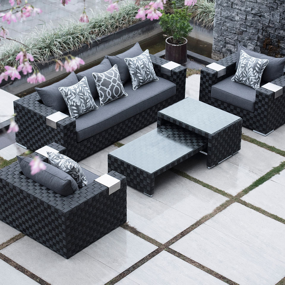 Ensemble de jardin : canapé individuel * 2 + canapé 3 places * 1 + table basse * 3