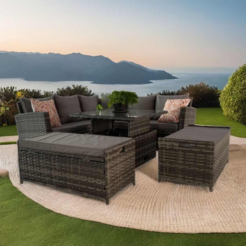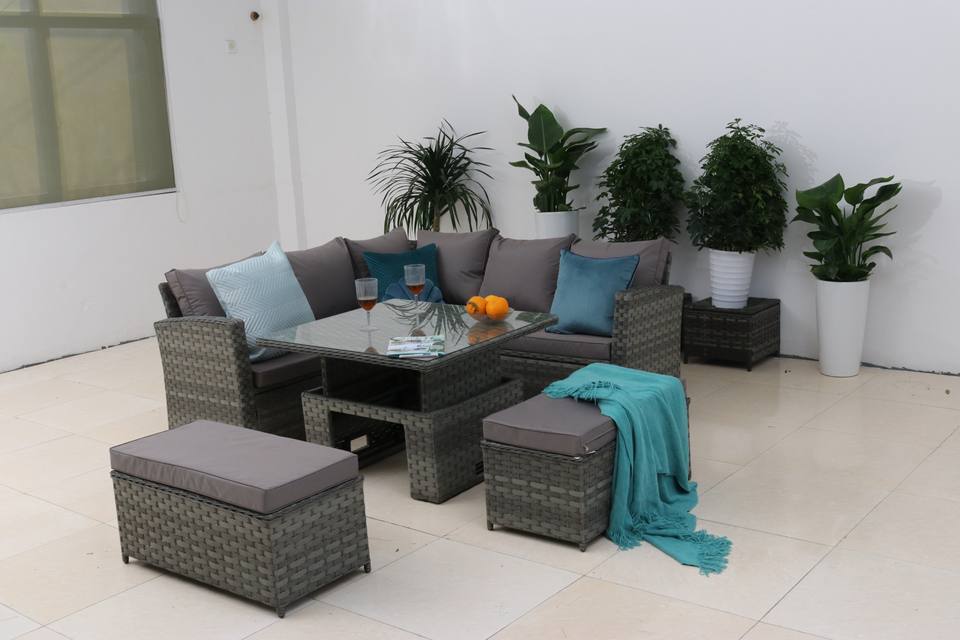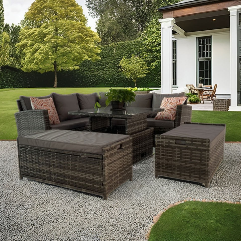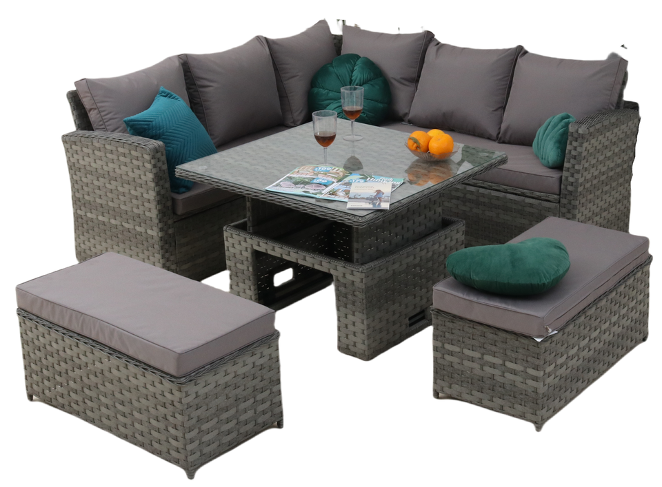 9 SEATER RATTAN GARDEN FURNITURE WITH LIFT-UP TABLE