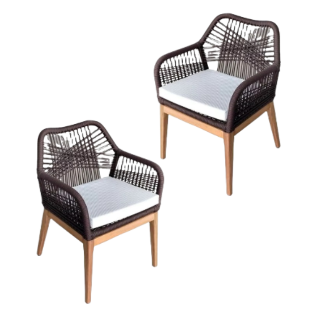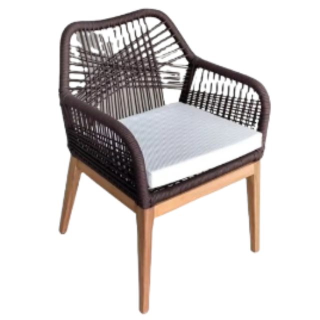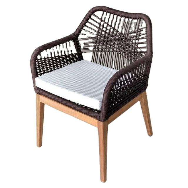 Fauteuils modernes en rotin et osier avec pieds en bois rembourrés pour la fabrication de meubles d'extérieur pour hôtels fabriqués à la main en Indonésie