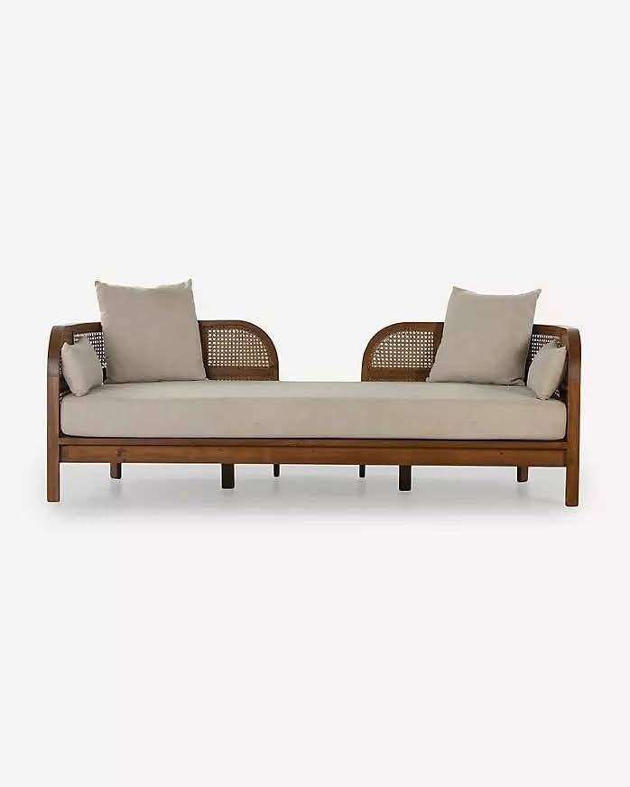 Canapé lounge moderne en rotin avec cadre en teck Design élégant tissé à la main pour un décor intemporel de salon ou de balcon ou un coin lecture