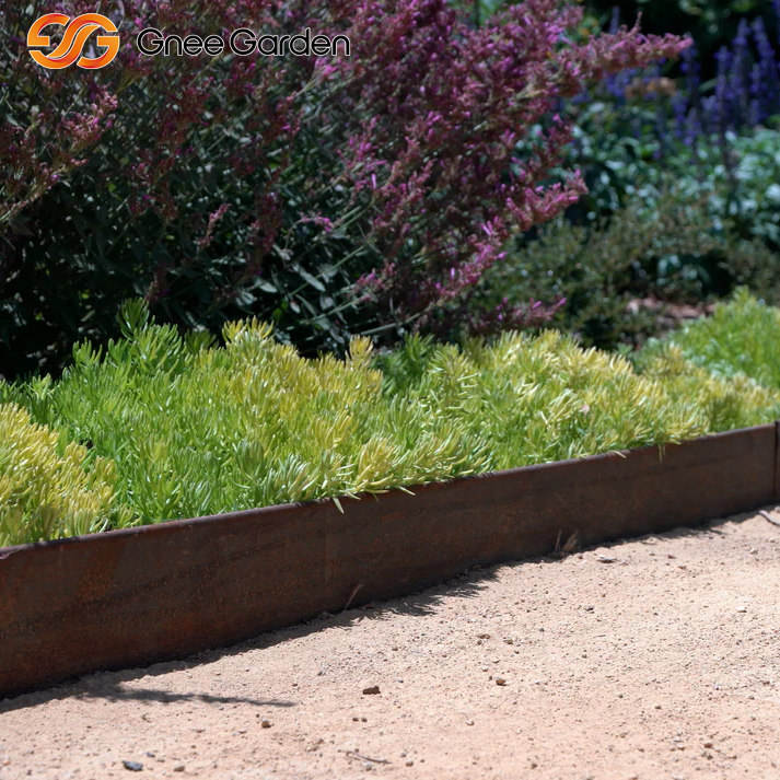 Bordure de jardin rectangulaire moderne en acier Corten, élégante et nécessitant peu d'entretien