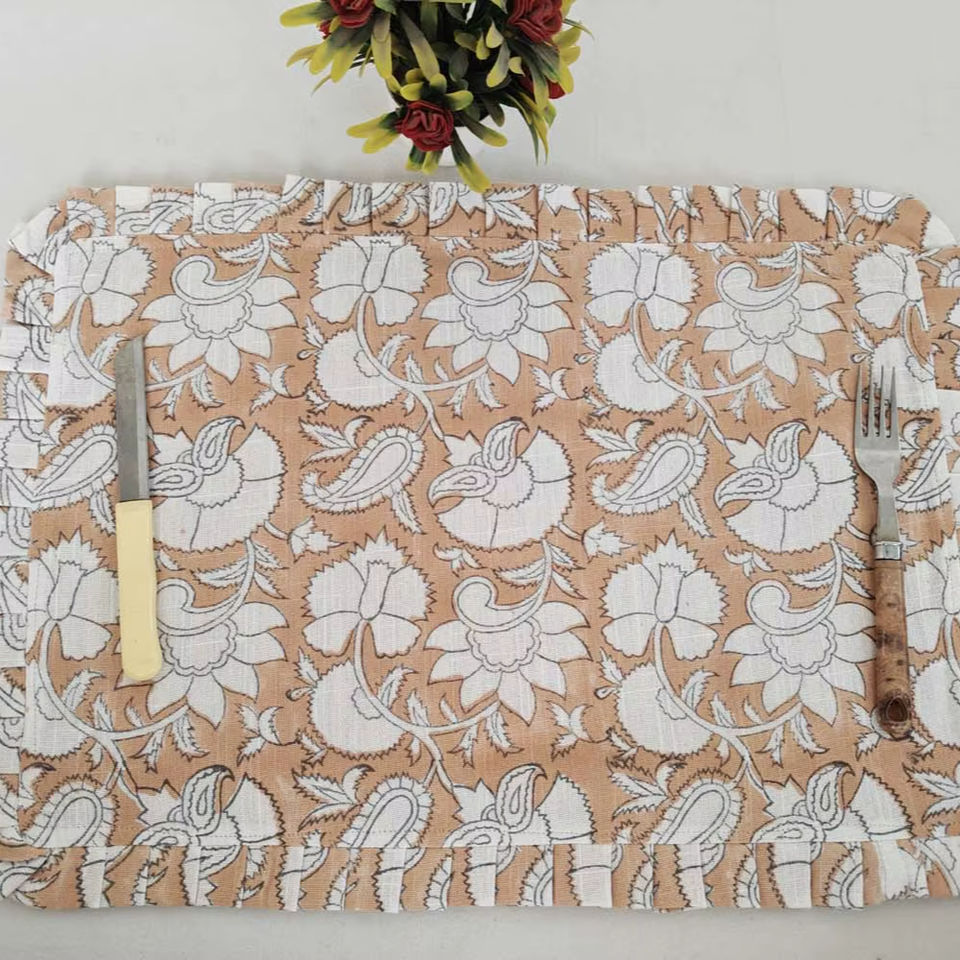 Napperons de table rectangulaires modernes à volants, imprimés à la main, 100 % coton, réutilisables, pour mariage, décoration de table, banquet, maison
