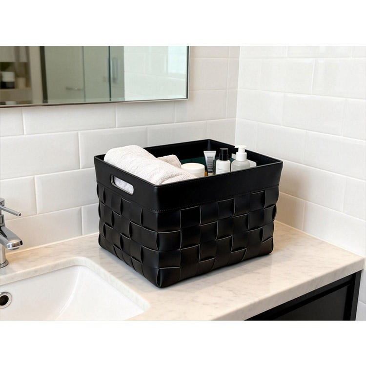 Panier de rangement multifonction en cuir tressé rectangulaire moderne pour l'organisation des vêtements et les vêtements sales