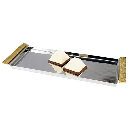 Plateau rectangulaire en métal et acier inoxydable, plateau décoratif rectangulaire en acier inoxydable avec poignées découpées minimalistes