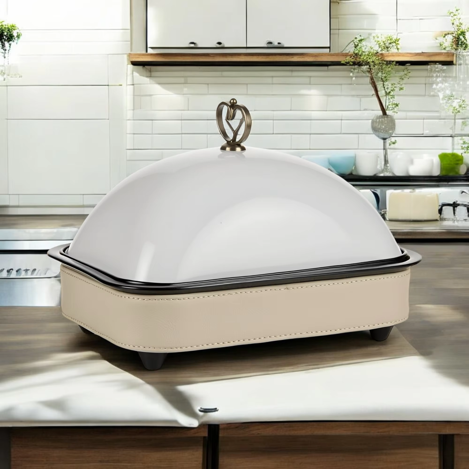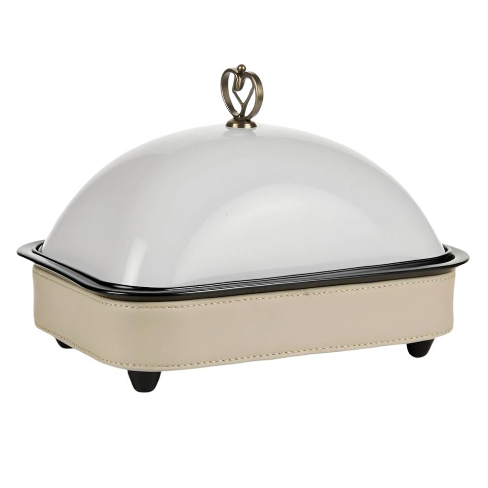 Casserole rectangulaire moderne avec couvercle blanc, idéale pour le service en buffet, la restauration et les dîners en restaurant, vente en gros depuis l'Inde