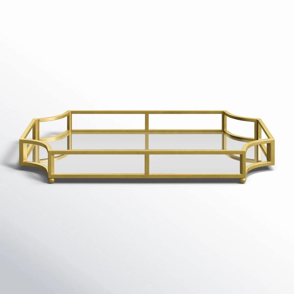 Plateau de vanité rectangulaire moderne en métal doré miroir pour parfums et bijoux – Élégant plateau de maquillage en verre et fil doré