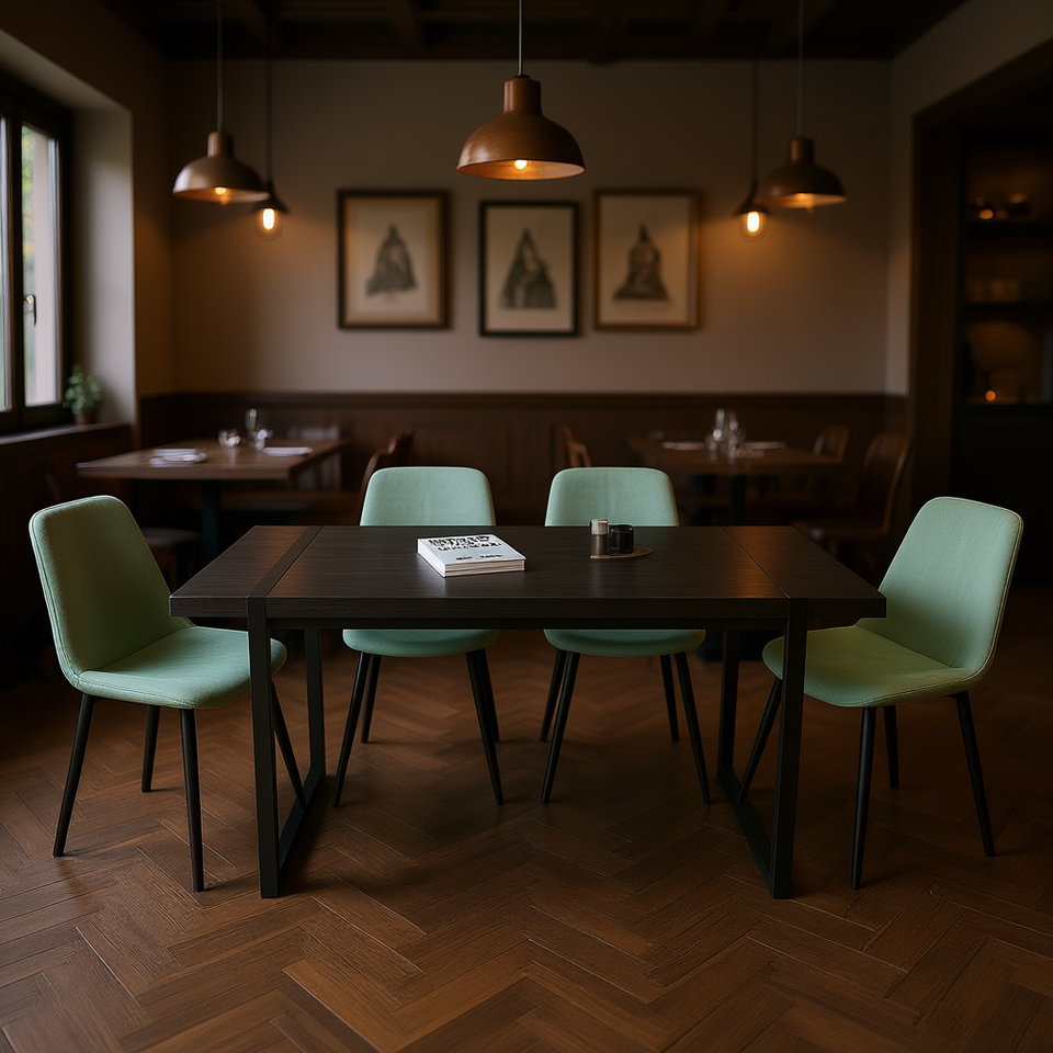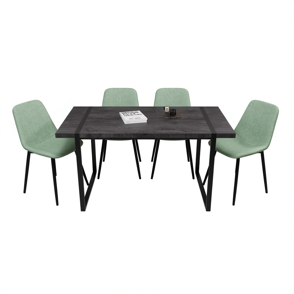 Ensemble de table à manger rectangulaire moderne en MDF avec structure métallique, 4 places, mobilier de restaurant pour usage en cuisine, design durable