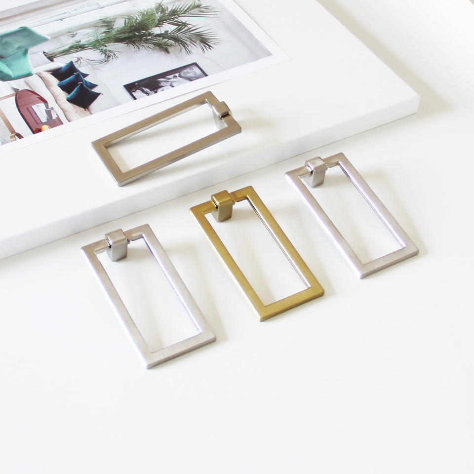 Poignée de meuble rectangulaire moderne en alliage de zinc à cadre ouvert, bouton de tiroir de luxe durable, écologique et facile à installer pour armoire et commode