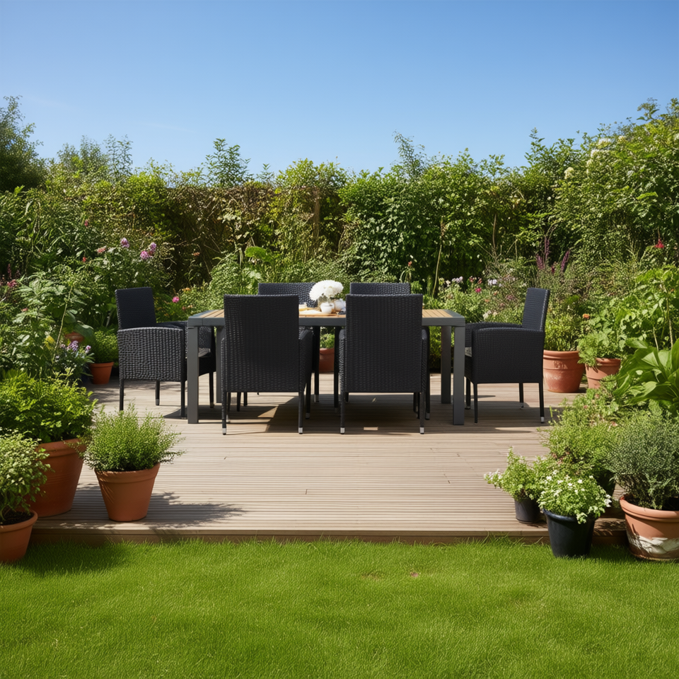 Ensemble de salle à manger rectangulaire moderne pour l'extérieur, 8 places, meubles de jardin en rotin, structure en métal noir, table et chaises de patio