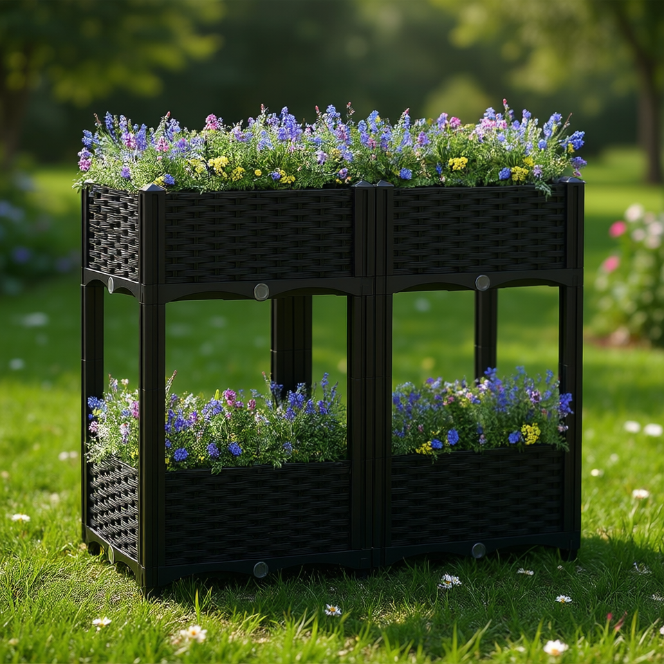 Jardinière rectangulaire surélevée moderne en polypropylène noir, taille moyenne, pour plantes de jardin et fleurs, pour usage extérieur