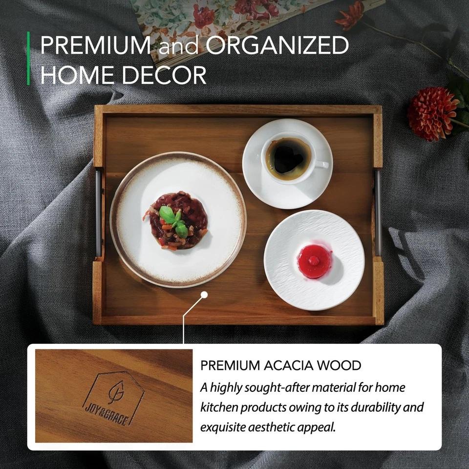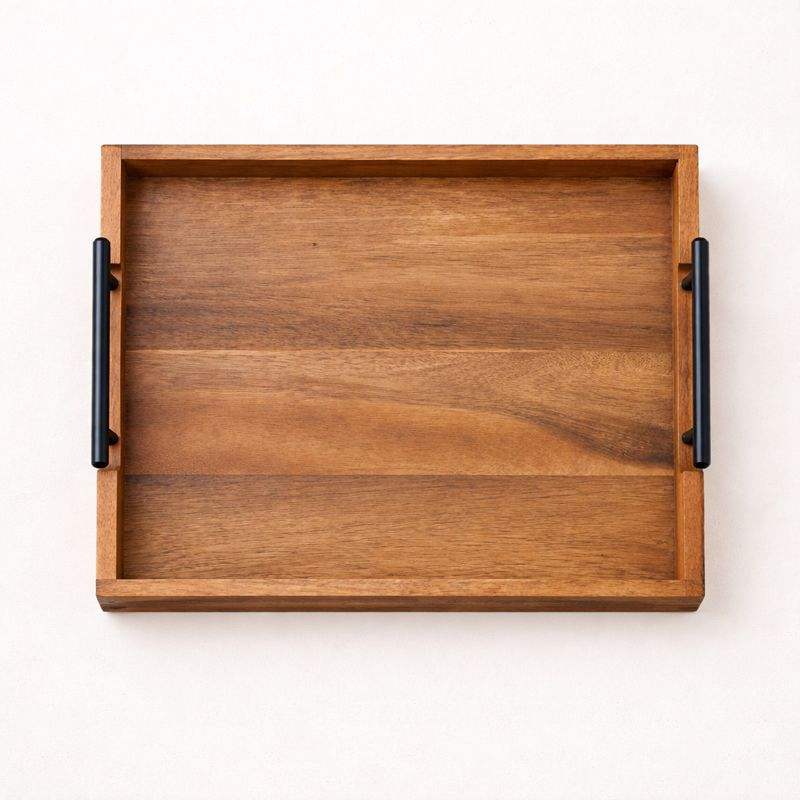 Plateau de rangement et de service rectangulaire moderne avec poignées robustes, côtés profonds, design facile à transporter, parfait pour la décoration de table