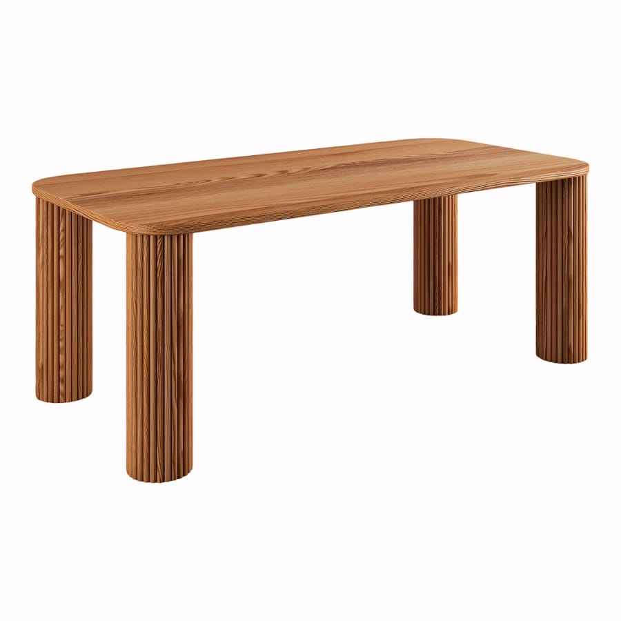 Table à manger rectangulaire moderne en bois avec conception de jambe cylindrique cannelée unique pour les restaurants et la maison.