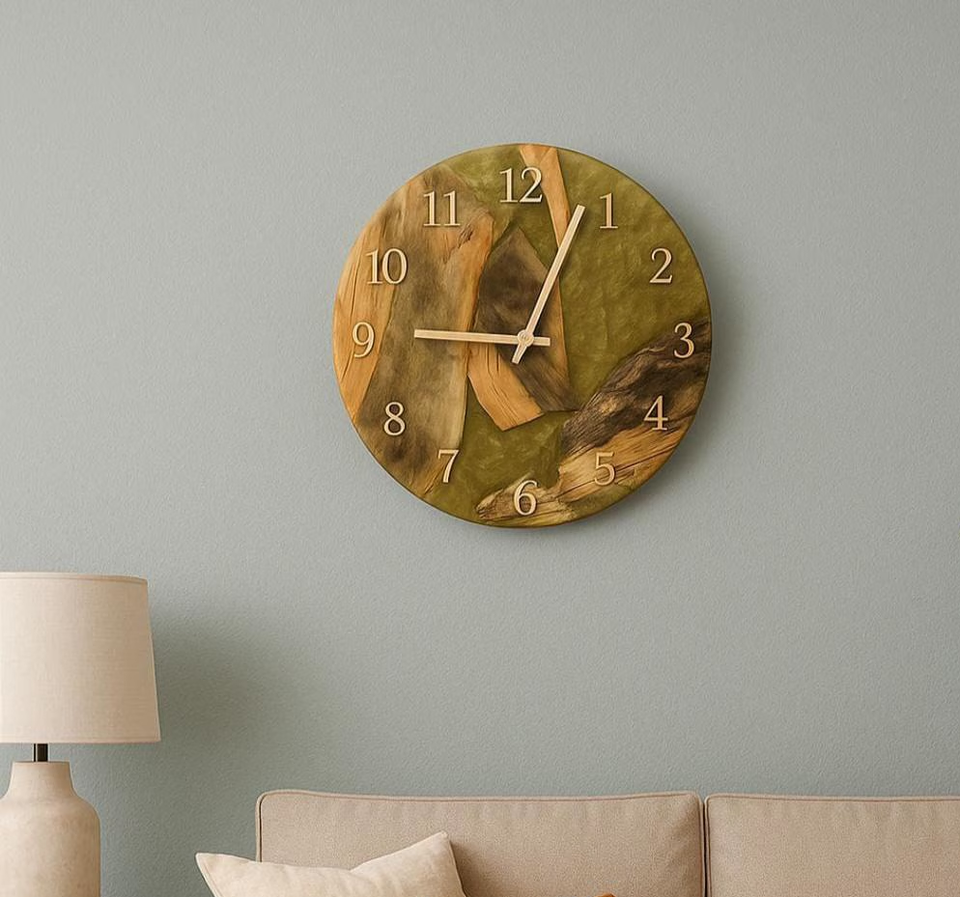 Horloge murale rectangulaire moderne en bois et résine époxy pour cadeau et décoration intérieure, objet décoratif artistique pour restaurant et hôtel