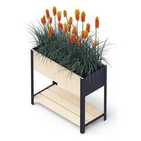Jardinière rectangulaire moderne en bois 78x36x72cm Naturel et Noir High UPYARD 0437 pour pots et jardinières Kronus