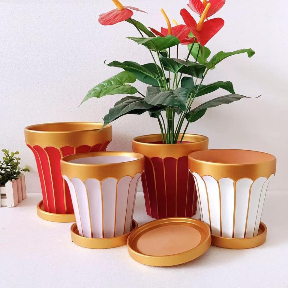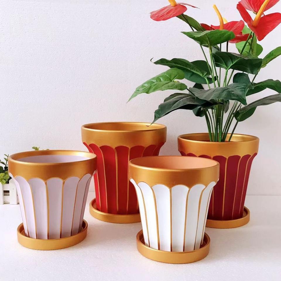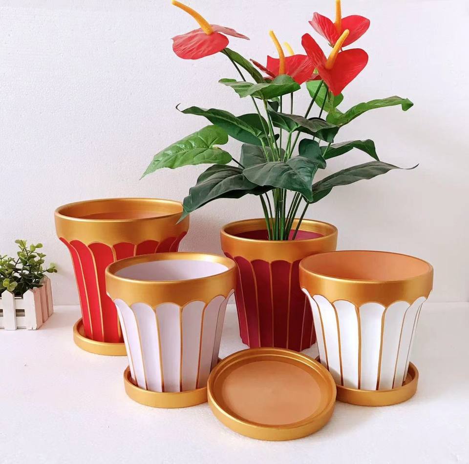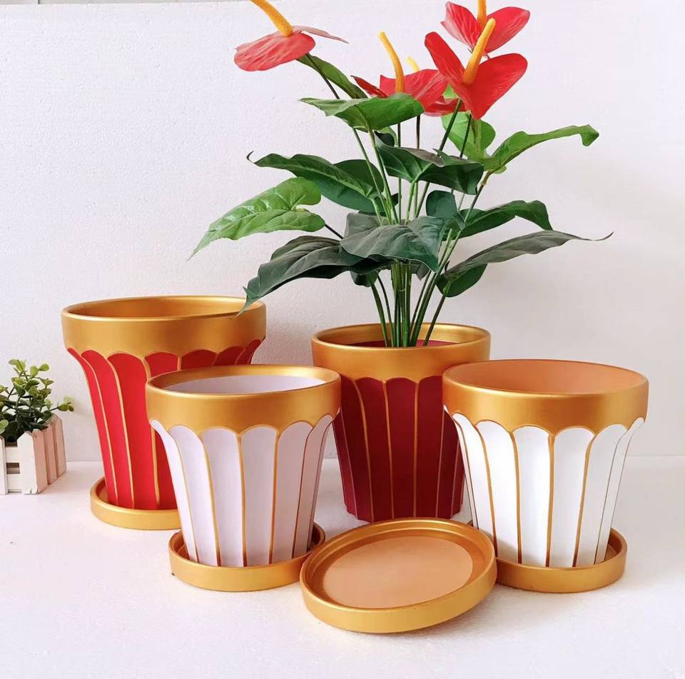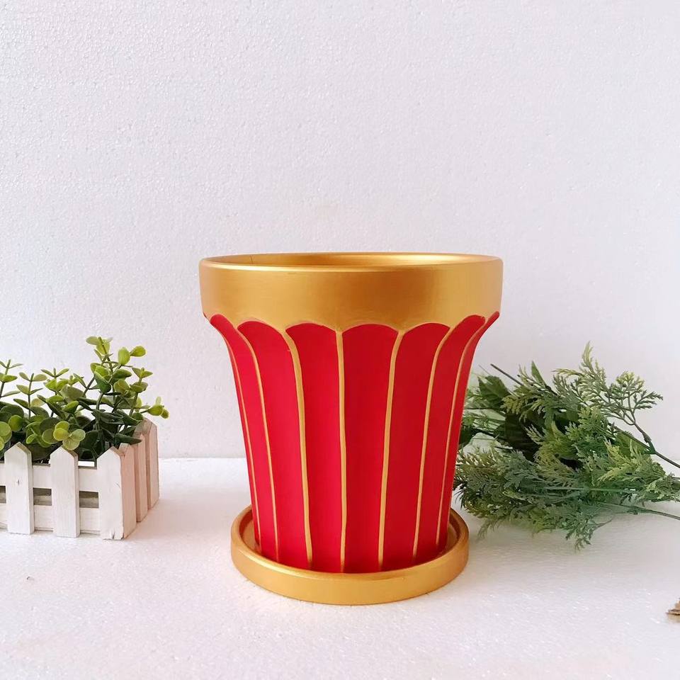 Pot de fleur en céramique de bureau coloré en poterie rouge moderne avec jardinière combinée de plantes charnues