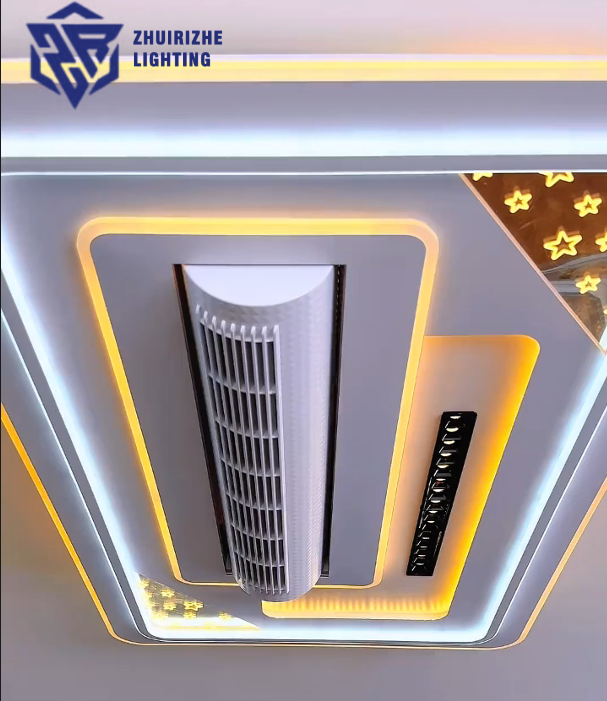Ventilateur de plafond LED moderne à moteur DC dimmable pour appartement, salle à manger, avec télécommande et lampe en acrylique, compatible application