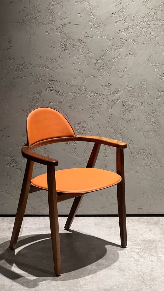Modern Orange Synthetic Leather Dining Chair with Armrest for Restaurants and Desks