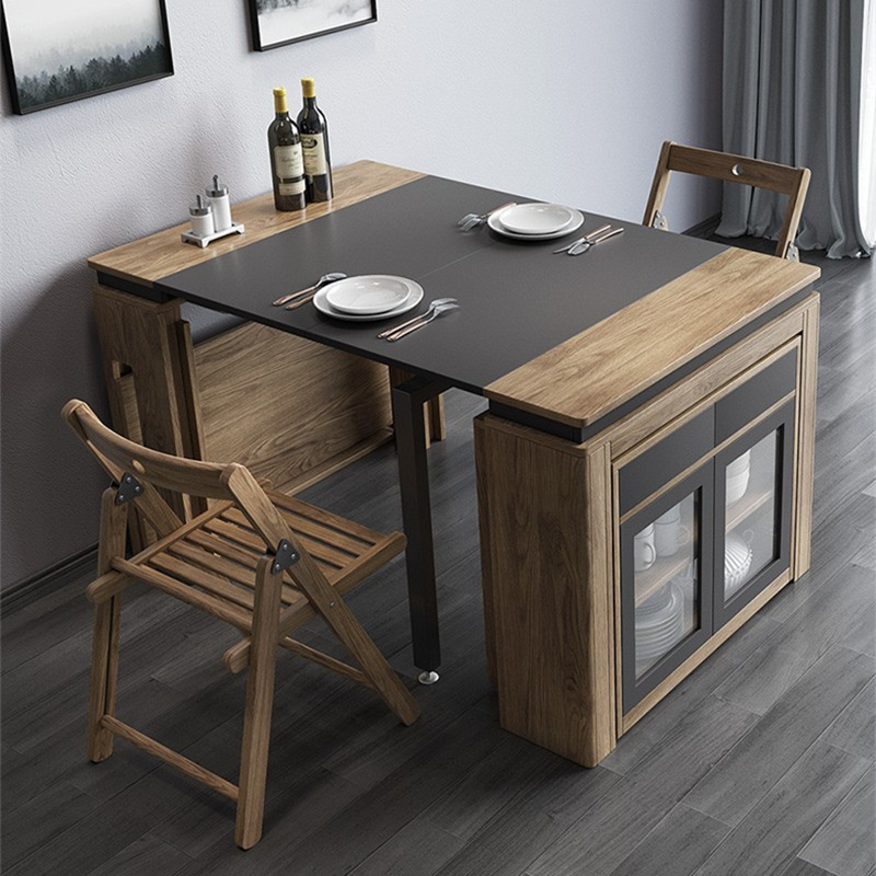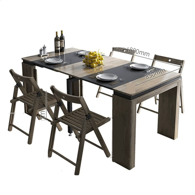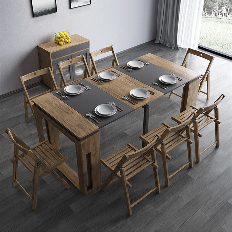 Table à manger pliante moderne rétractable à rallonge en bois avec pieds en métal et chaises assorti