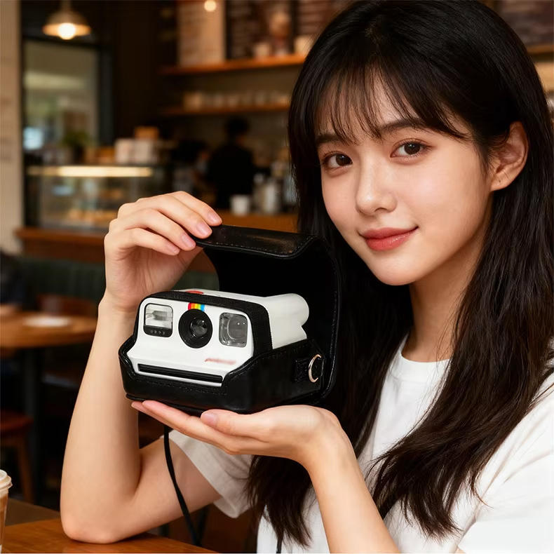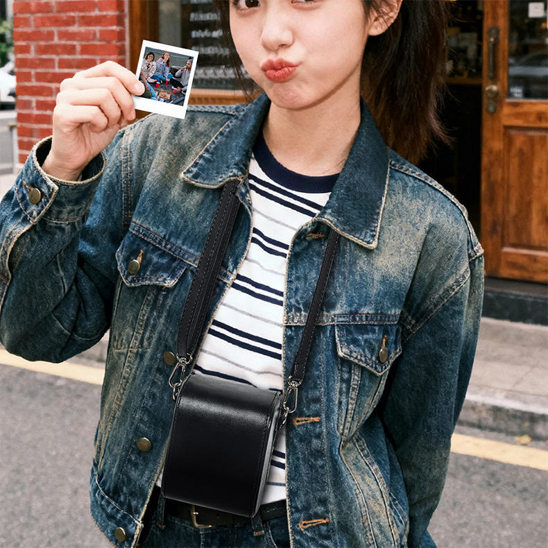 Sac de transport moderne rétro en cuir PU pour appareil photo Pola Go – Étui de protection portable et pratique