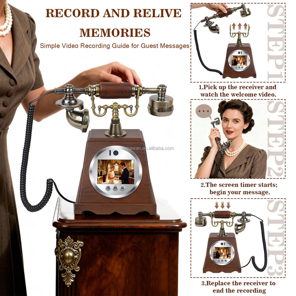 Livre d'or audio-vidéo portable rétro moderne, fournitures pour fêtes, photomaton, livre d'or vidéo pour mariage, téléphone pour mariage