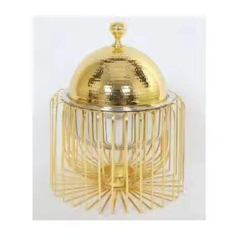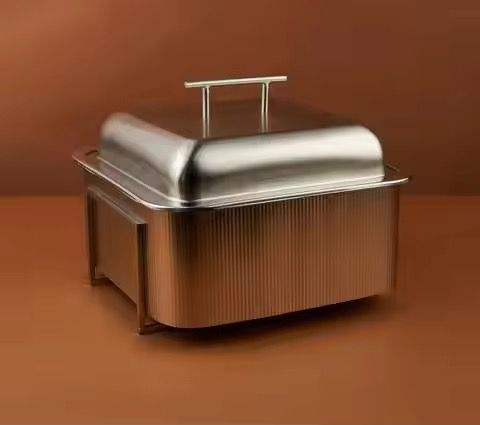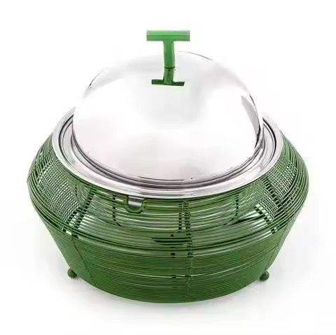 Chauffe-plat moderne à base côtelée avec couvercle en dôme métallique, motif radial décoratif, pot à gratin élégant, ustensile de cuisine stylé