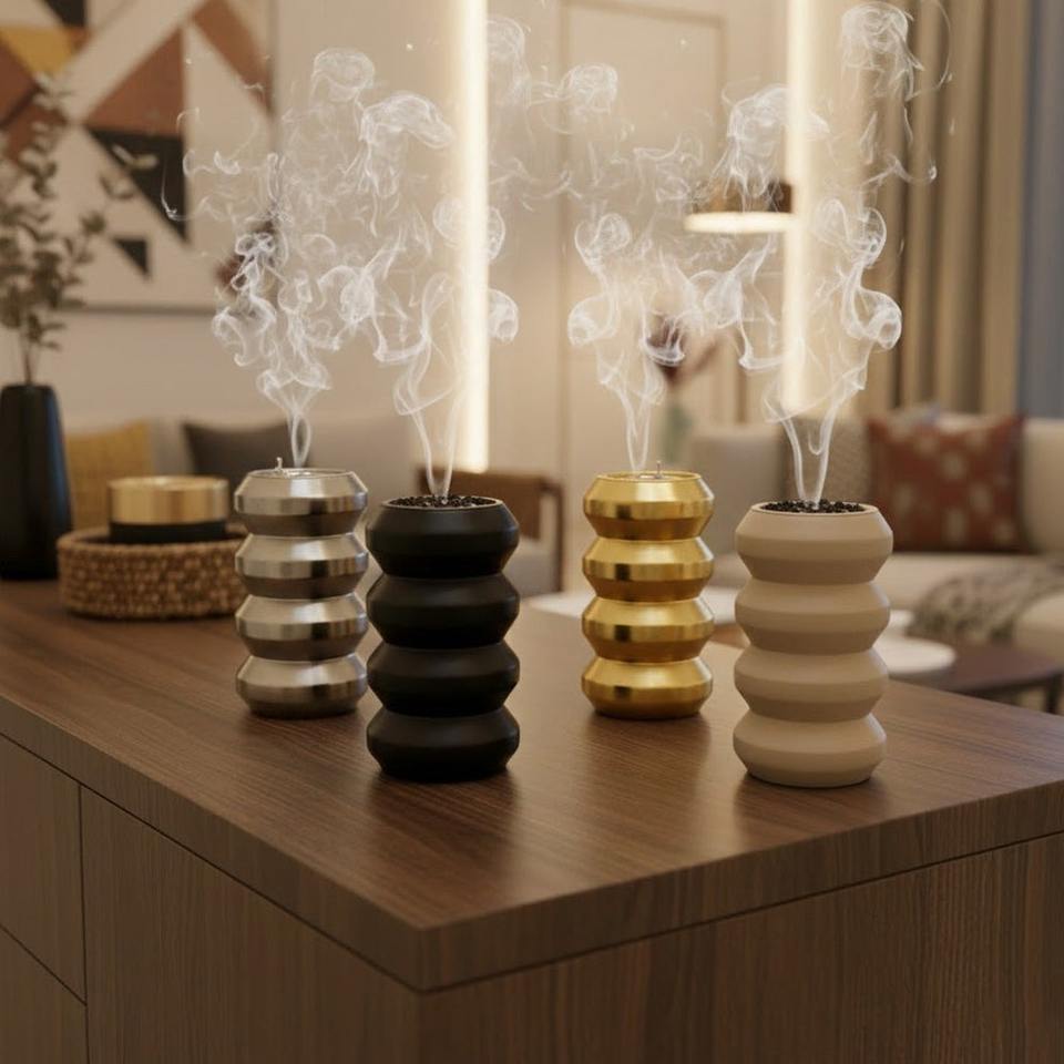 Brûleur à encens en métal côtelé moderne, porte-encens Oud arabe de luxe pour la décoration intérieure du Moyen-Orient, disponible en Or, Argent, Noir Mat, Crème