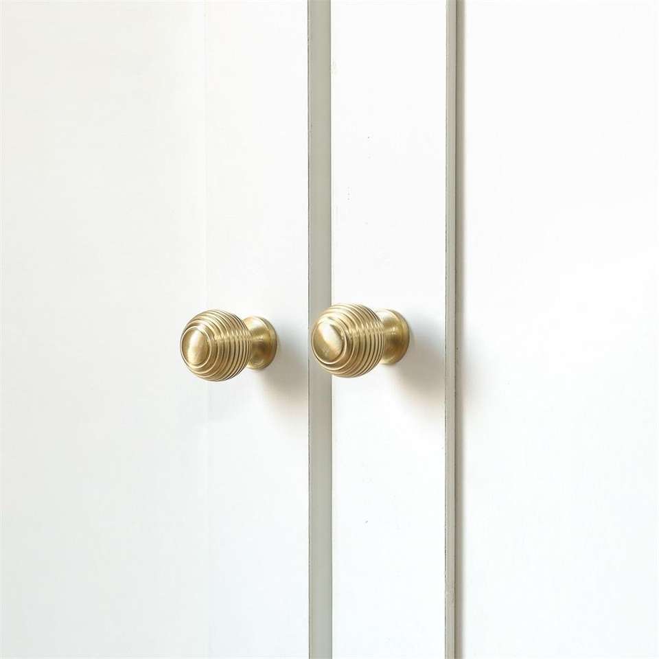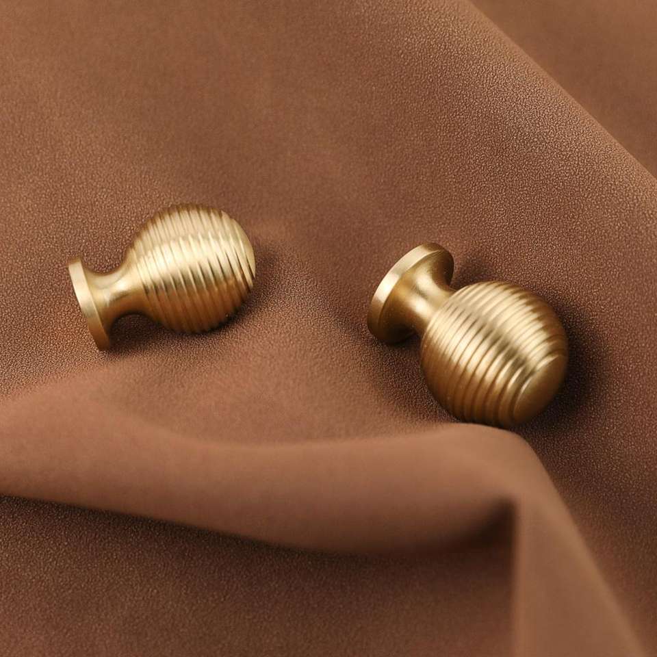 Bouton de meuble moderne côtelé rond en laiton massif, finition or brossé, poignée texturée pour tiroirs de cuisine et armoires