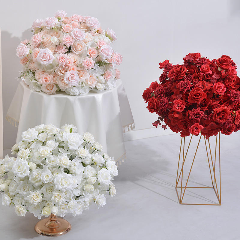 Vente en gros de boules de roses artificielles en soie rose de 60 cm, décoration florale romantique pour centre de table de mariage