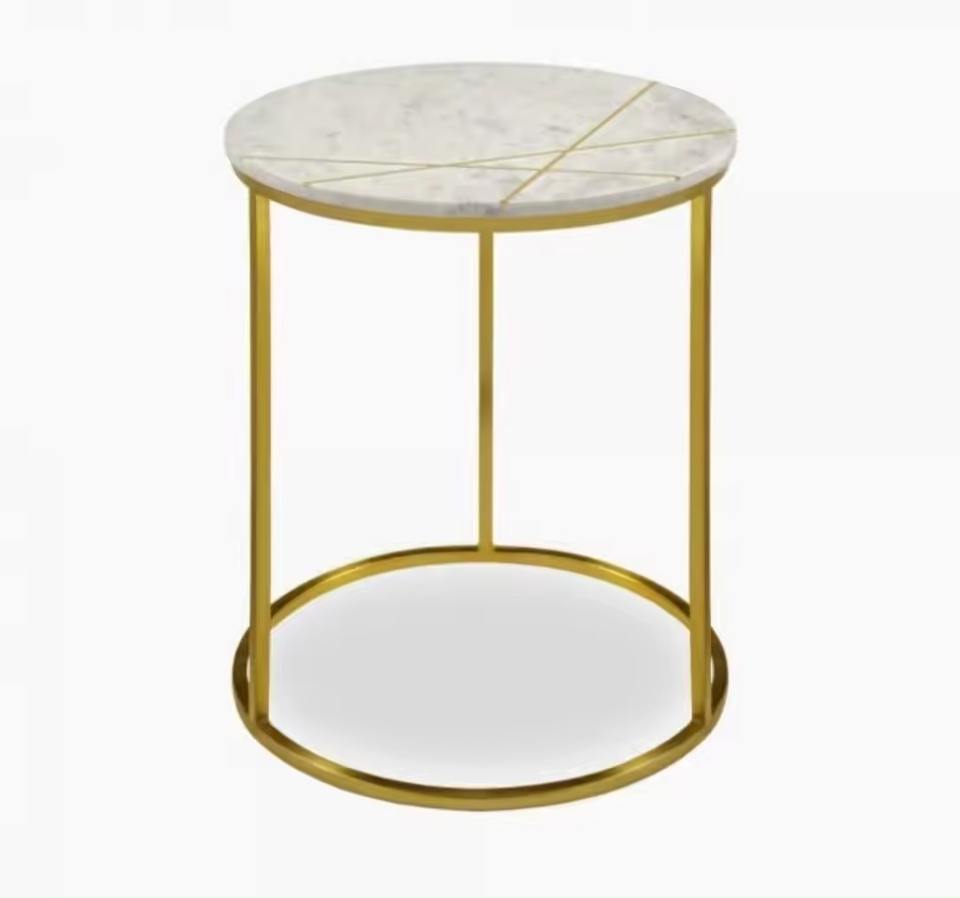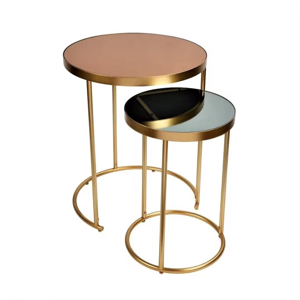 Table d'appoint ronde moderne réglable avec plateau en verre trempé noir et structure en fer plaqué or, finition thermolaquée, mobilier de maison