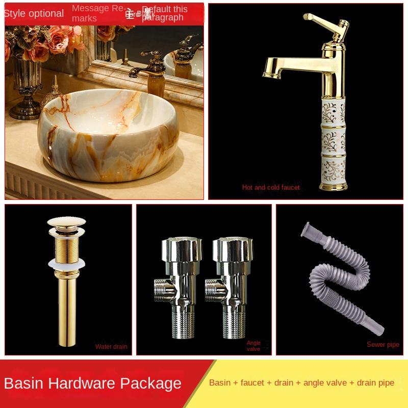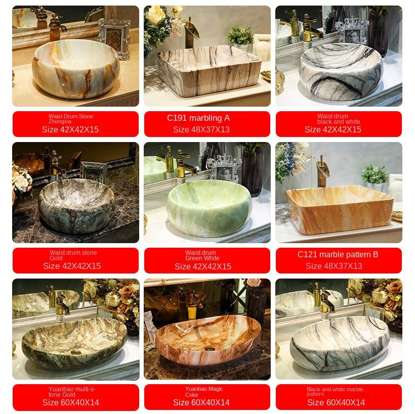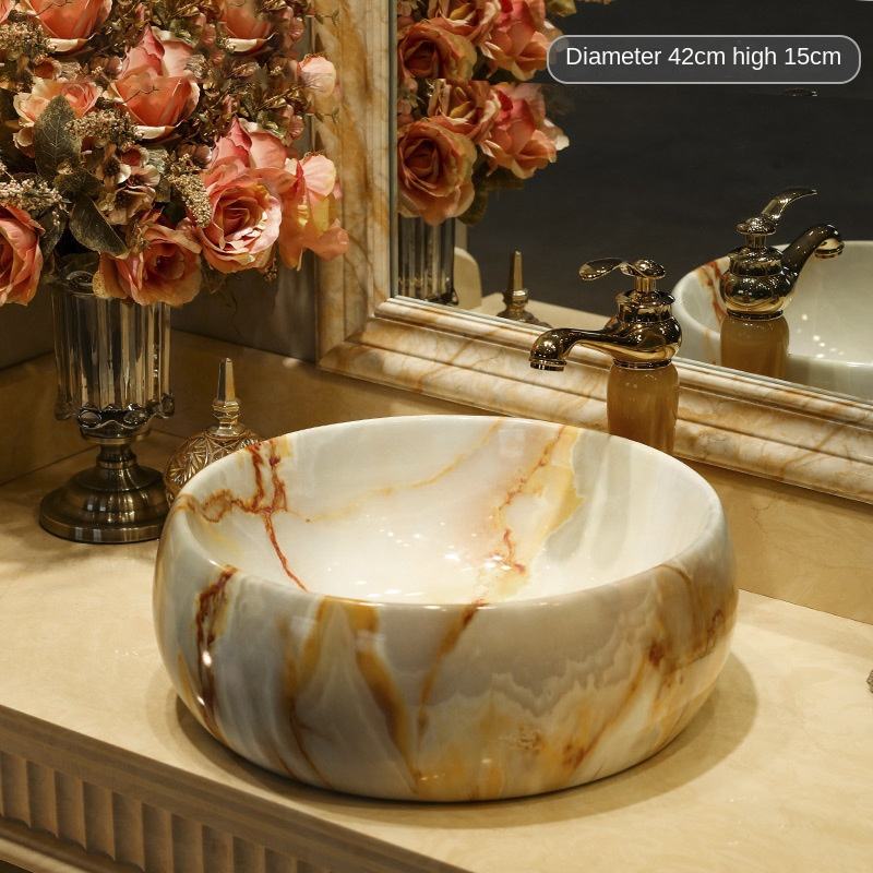 Table ronde moderne en marbre, lavabo de comptoir, lavabo contemporain en céramique pour salle de bain à usage domestique