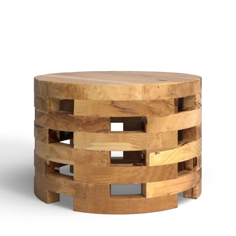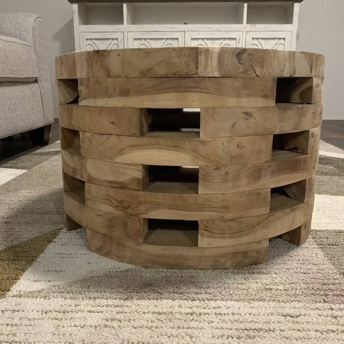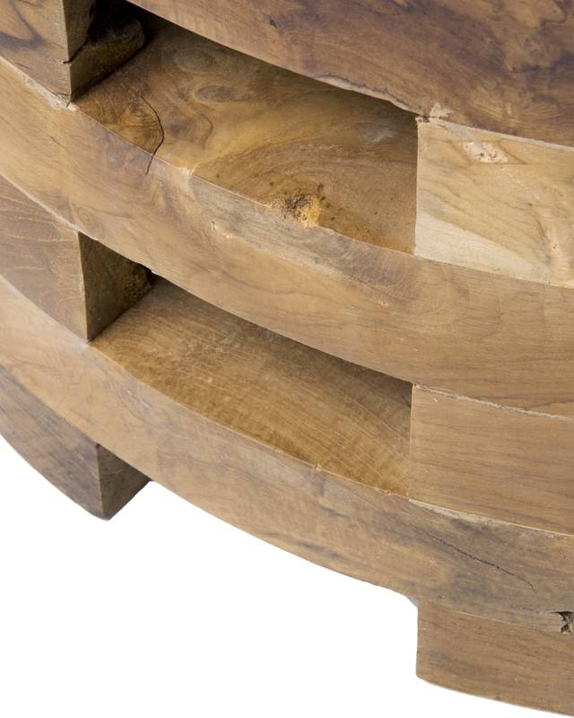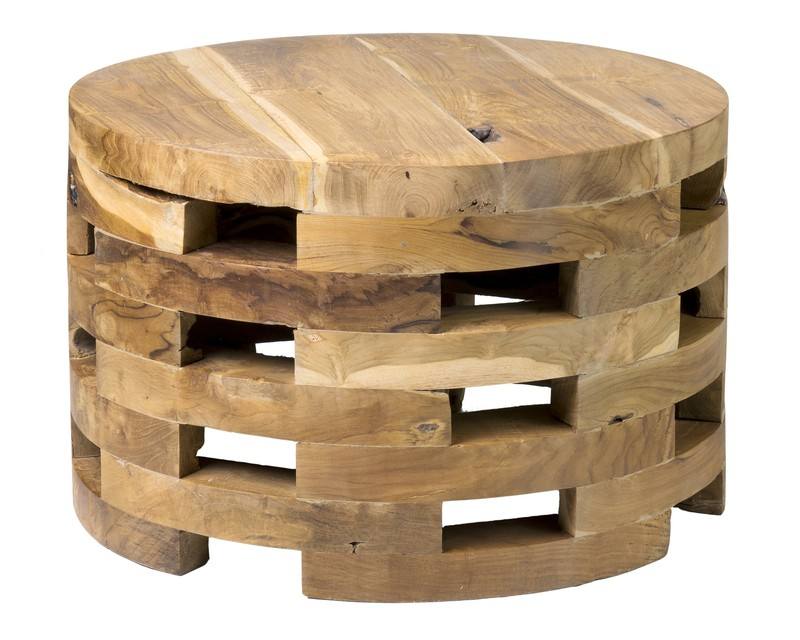 Table basse ronde moderne en teck massif couleur naturelle taille réglable