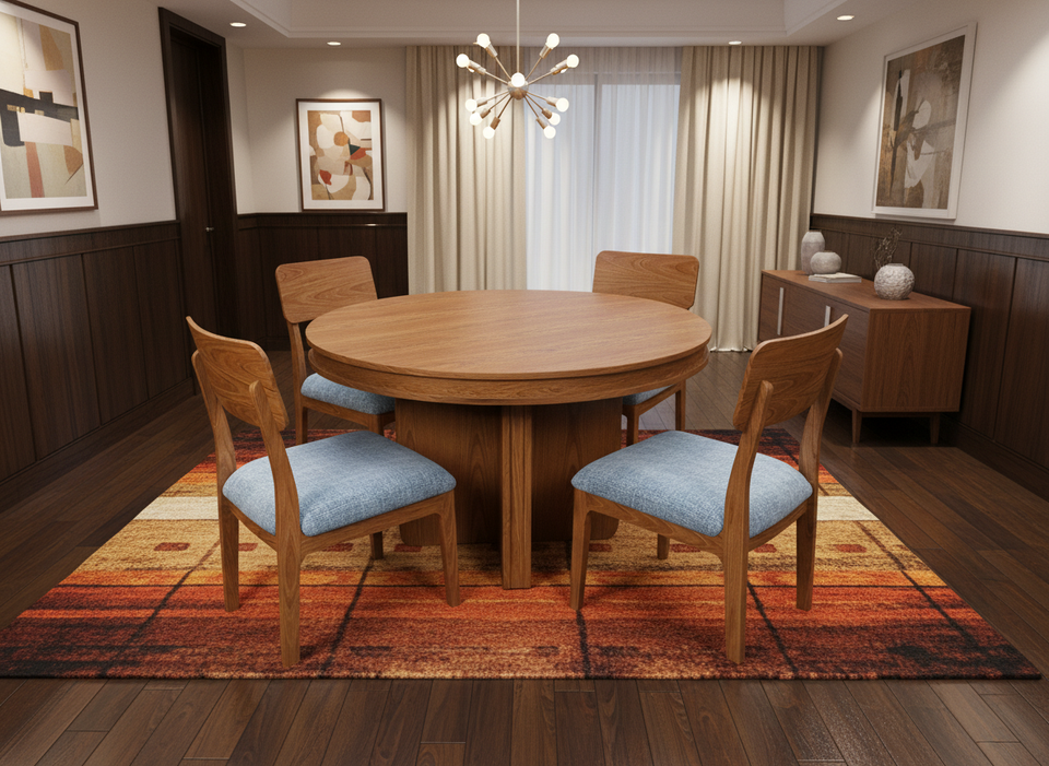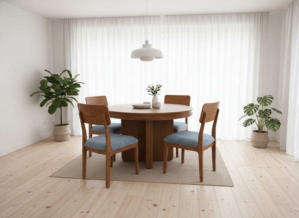 Ensemble de table basse ronde moderne avec 4 chaises en frêne massif et placage MDF, durable et facile à nettoyer