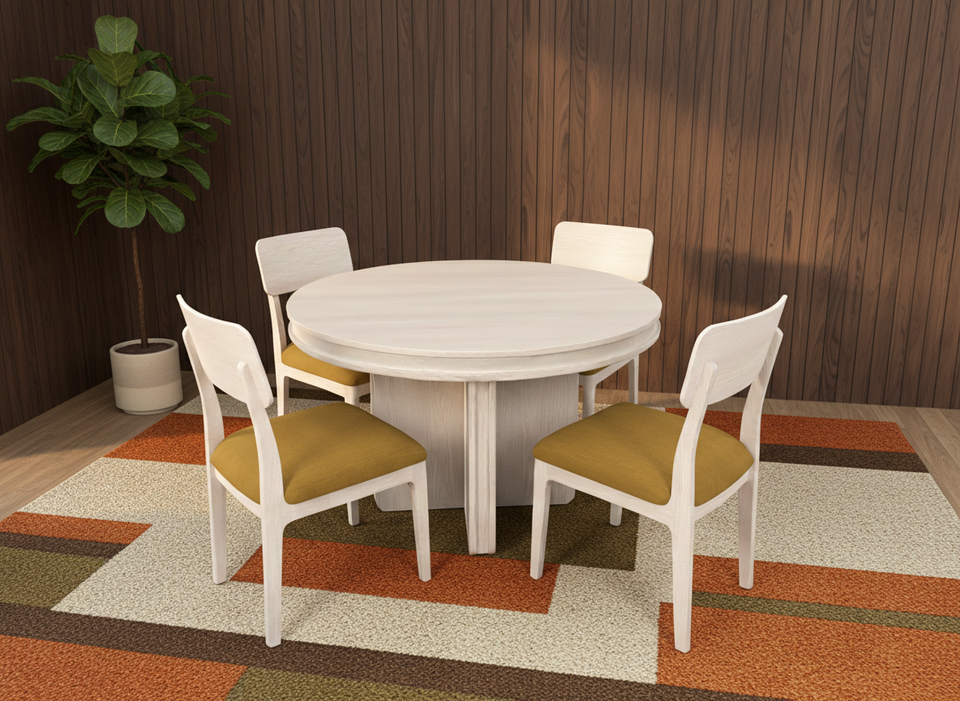 Ensemble de table basse ronde moderne avec 4 chaises, structure en frêne massif et en bois de caoutchouc, durable et facile à nettoyer