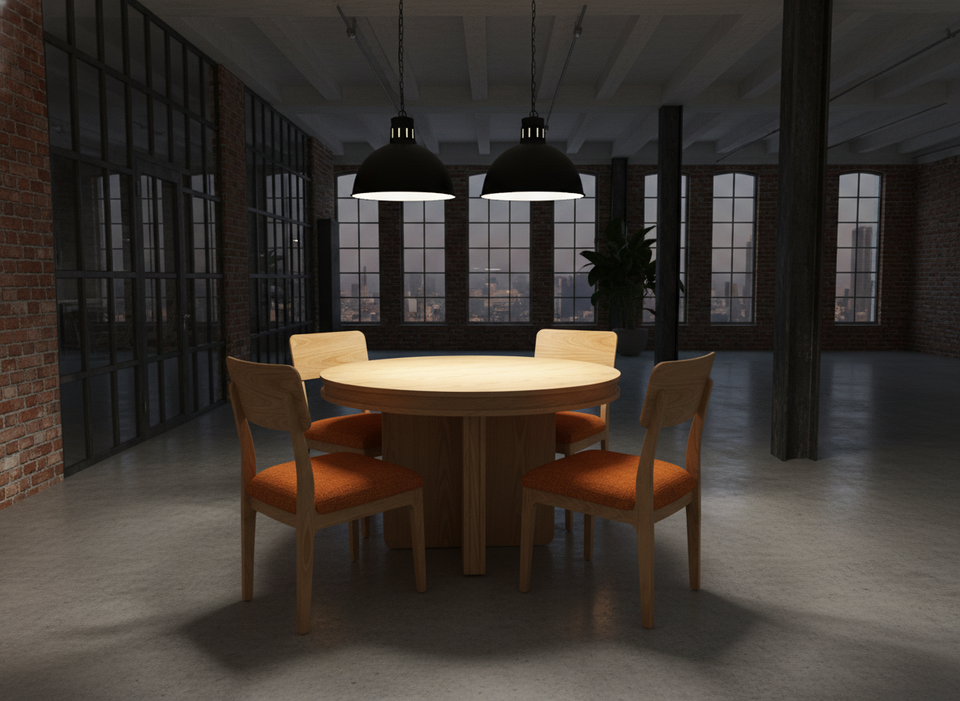 Ensemble de table basse ronde moderne avec 4 chaises en frêne massif et placage MDF, léger et durable