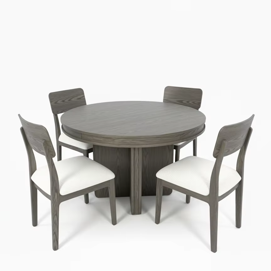 Ensemble de table basse ronde moderne avec 4 chaises en frêne massif et placage MDF, meubles durables pour le salon
