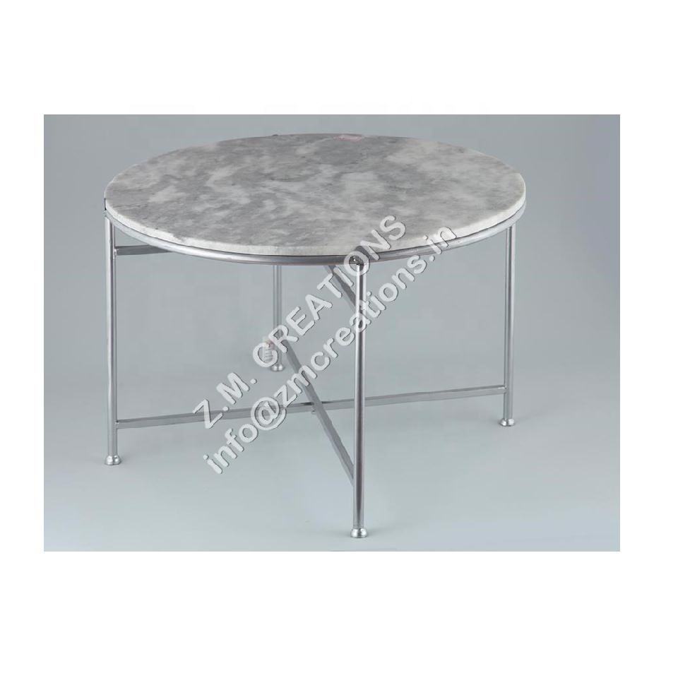 Modern Round Coffee Table with Silver Metal Base And Wooden Marble Granite Top Low Height for Home Office Living Room Furniture