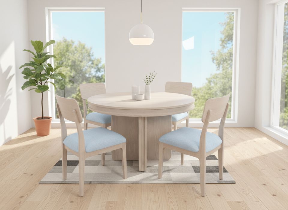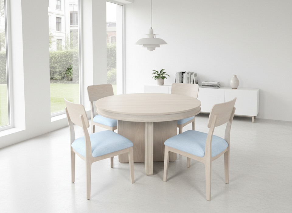 Ensemble de table à manger ronde moderne avec 4 chaises, construction en frêne massif et placage MDF, durable et facile à nettoyer