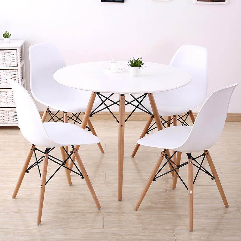 Modern Round Dining Table Solid Wood Legs Black Top Living Room Furniture Stable Design Adult Use