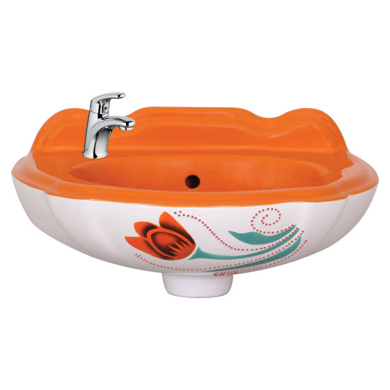 Lavabo rond moderne en céramique blanche, à poser au mur, pour salle de bain