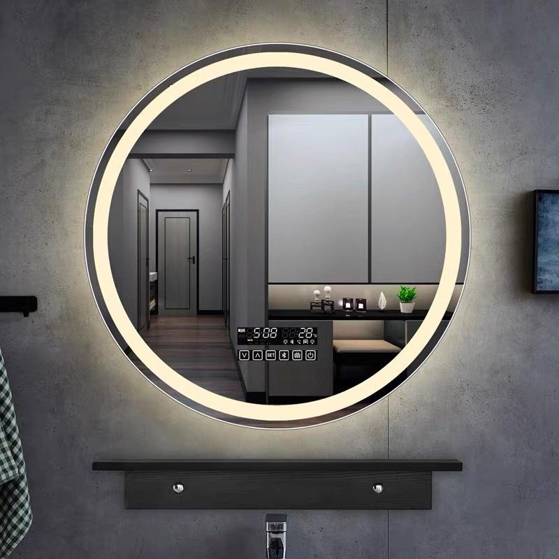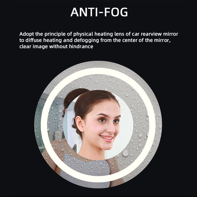 Miroir LED Rond Moderne Mural avec Écran Tactile, Miroir Connecté pour Salle de Bain avec Éclairage LED
