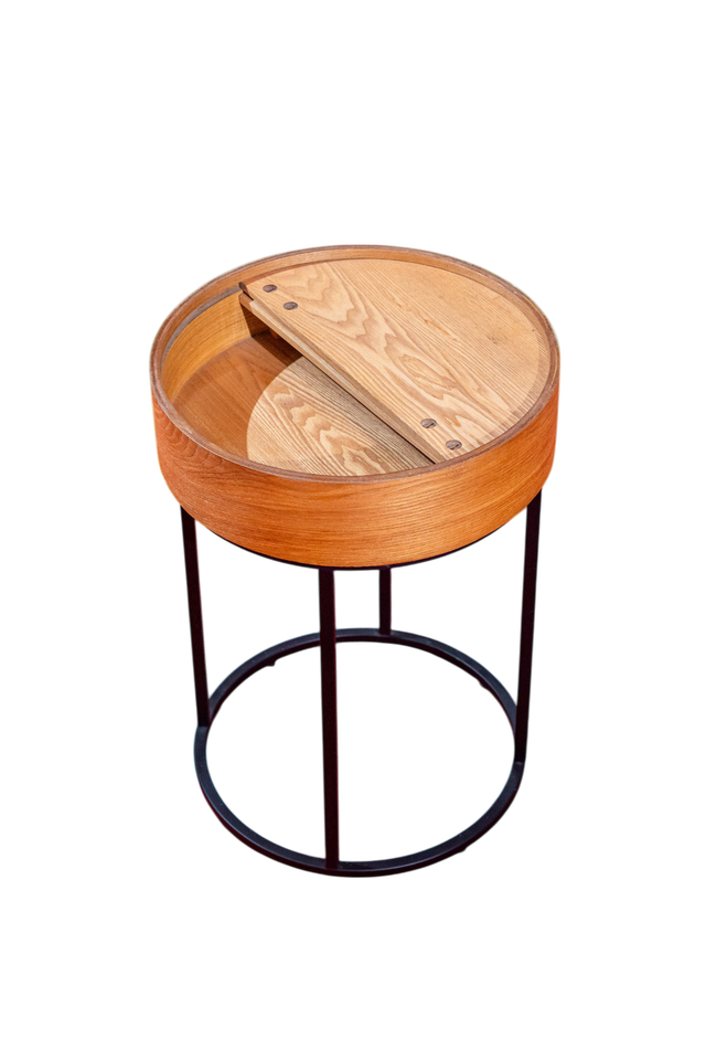 Table basse ronde moderne en MDF avec cadre en métal placage de frêne caractéristique mobile pour meubles de salon à la maison