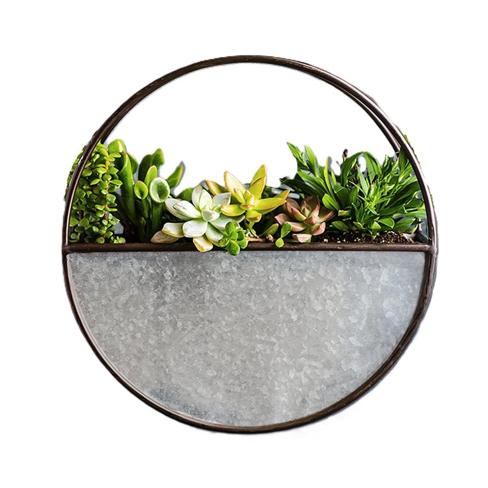 Ensemble de 3 jardinières murales rondes en métal moderne, en fer galvanisé, pour plantes succulentes et herbes, décoration intérieure et extérieure
