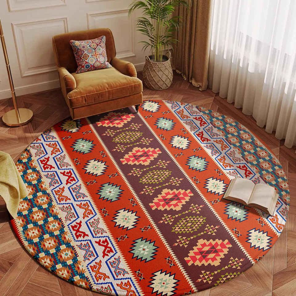 Tapis de sol moderne rond persan bohème géométrique tapis facile à nettoyer polyester imprimé pour salle à manger salon pour shampooing
