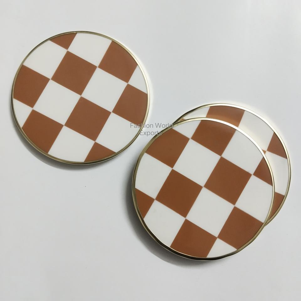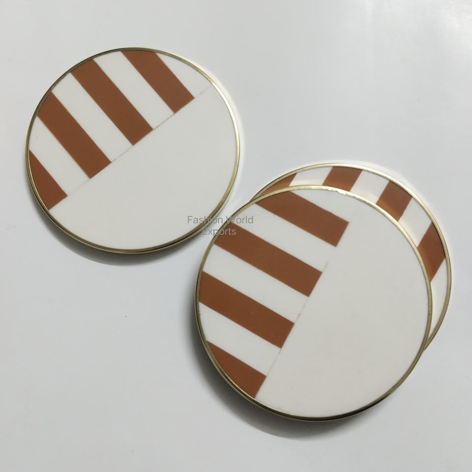 Ensemble de sous-verres rétro ronds en résine écologique avec motif géométrique blanc terre cuite et bordure dorée, décoration de table pour café et repas